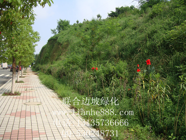 公路邊坡的生態(tài)恢復(fù)以往采用多草種混播,由于草種屬淺根性植物,其根系一般只能分布于噴混建植層的表層,對(duì)邊坡惡劣環(huán)境的抗逆性弱,生物群落穩(wěn)定性差,往往在3-5年植被就出現(xiàn)退化。在草本群落中加入灌木,形成灌草結(jié)合的穩(wěn)定立體復(fù)合生態(tài)體系,能解決單一草本植物群落易退化的問題。灌木根系發(fā)達(dá),灌草生態(tài)建植層的根系交織成穩(wěn)定結(jié)構(gòu),能最大限度地防止水土流失和坡面跨塌??朔荼煌嘶闹匾胧┦菢?gòu)建喬灌草立體生態(tài)系統(tǒng),包括以灌木為主的灌草生態(tài)和以草為主的草灌生態(tài)。 灌草種配置的具體措施有:1)以地帶性植被、鄉(xiāng)土植物為基調(diào),適當(dāng)引進(jìn)適于本地生長條件的野生植物和外地植物;2)考慮淺根植物和深根植物的結(jié)合、豆科植物和非豆科植物的結(jié)合;3)盡可能配置抗逆性強(qiáng)的植物和水肥光熱利用率高的植物。只有這樣,才能建設(shè)一個(gè)具有生物多樣性的、穩(wěn)定的立體生態(tài)群落。